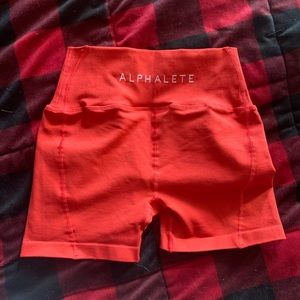 NWOT becuase alphalete doesn’t put tags on their items but these are new never worn. Bought a medium but neeed a small. Beautiful red color! Pics make it look more burnt orange but it’s red. I wanna say these are the coral red color shorts