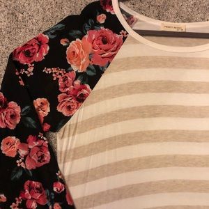NWOT, Twenty Second Floral & Striped Baseball T-Shirt Plus 2X