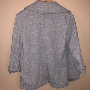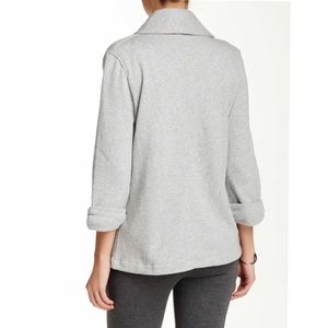 Excellent Used Condition Theory Asbey Growing cardigan in gray. Size Small. A shawl collar and 3/4 length sleeves add a fun twist to the Asbey Growing Cardigan. - Rolled cuffs - Approx. 26" length
