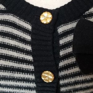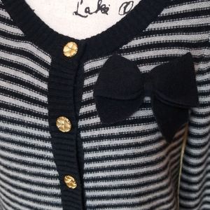 Juicy Couture cashmere and wool gray and black sweater with bow accent and gold buttons.