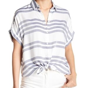 Linen Blend High Rise Striped Paper Bag Shorts