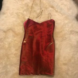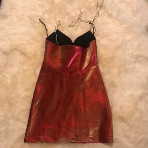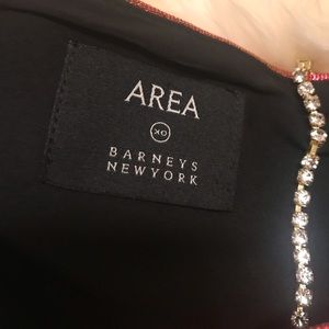 New without tag. Stunning Area NYC crystal choker strap mini dress. The lamé fabric shifts from Orange to red. So beautiful in photographs. The ultimate showstopper party/ event dress 💖 seen on kourtney Kardashian in another color way! took me a longggg time to list this cuz I just love it so much so please no low balls. Im open to reasonable offers tho! Love this dress sm. 🥺