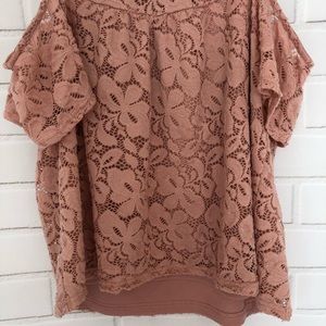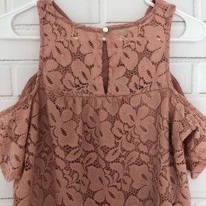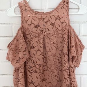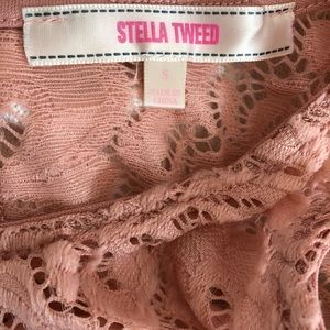 Stella Tweed Women's Blush Pink Cold Shoulder Cropped Lace Boho Top Size Small. Condition is Pre-owned.