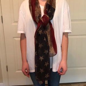 Beautiful sheer flag scarf, sarong or wrap. It measures 39” x 71.” It is 100% polyester. I have multiple available.