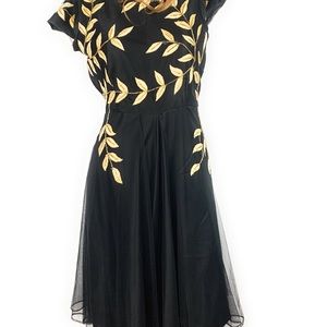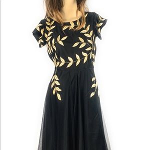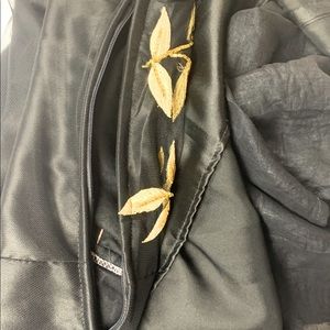 Outer layer is Soft net fabric with gorgeous golden embroidery. Charming leaves design golden thread embroidered with golden shiny beads. Second layer is silky satin and the third inner layer is cotton. I love inner cotton layered clothing because it keeps me away from getting those annoying static cling.