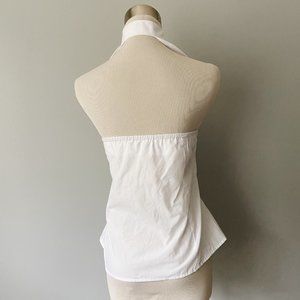 White Button High Neck Sleeveless Halter Top - XS