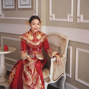 This traditional Chinese wedding comes with the top, skirt, and headwear. The length of the skirt can be adjust by yourself.