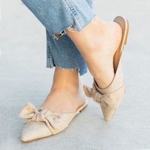 NEW๐ฅ Linen Weave Bow-Tie Flat Mule Sandal Loafers