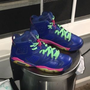 Air Jordan Retro Royal Blue VI Anacondas (Nicki Minaj) which are size 6.5Y and are still fresh. Laces are still good and so are the bottoms. There are no creases that I can see unless I’m blind and inside of shoe is clean also. I’m asking $100 or O.B.O. There are some on here for $75, $85, $100,$120,$135, and even $200. eBay has pretty much same prices even seen pair for $250. I don’t know about all theirs but I know mine are in great shape just let me know.
