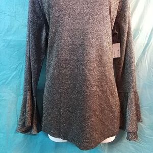 Womens Blouse Plus Bell-Sleeve Black 1X