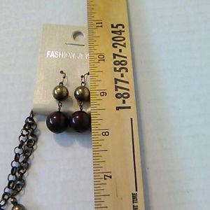 This leopard Necklace and earrings set is brass metal and brown beads . This is new condition still on the original card and never been used. Lead compliant. Part of a store closing sale.