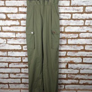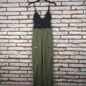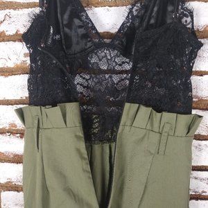 Gently Pre-Owned. Fashion Nova ROMPER JUMPSUIT Green Khaki Pant & Black Lace Cami SZ XS. Sexy! Has back zip. May be worn with or without a belt. B#2 019 Please review measurements carefully.