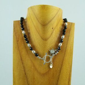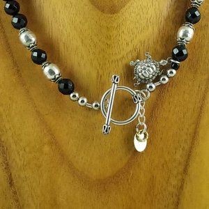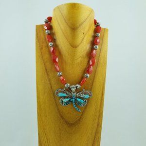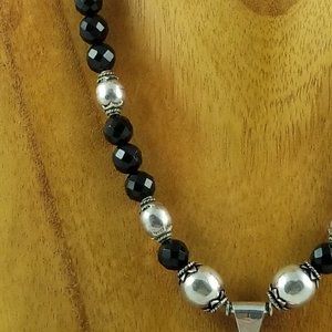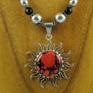 Sterling Silver Starburst Red Coral and Faceted Black Onyx Necklace. Very unique and one of a kind, Designed by SherriO Jewelry. 18" long with a 2" pendant drop.