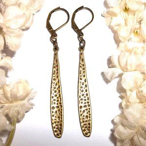 You will love the long length of this beaded earring set. Brand new & handmade by me. Done with sexy green crackled acrylic beads and antiqued silver toned costume jewelry beads. The stick bar has diamond cuts in it that sparkle in the light. The pair dangle & drop from 925 sterling silver lever backs for women's pierced ears. 2 1/4 inches tall & 3/8 inch wide. Each single earring weighs 1.9 grams. Lightweight!