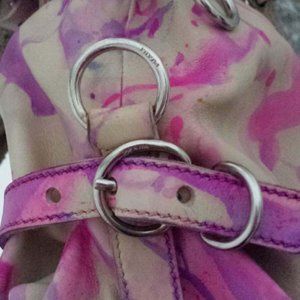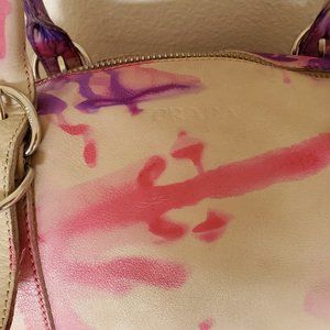 *PRADA leather purse ivory white pink purple tie dye bowling Bag vitello saffiano*
