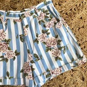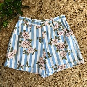 Vintage 1990's High Waisted Floral Striped Denim Cuffed Shorts. So cute and fun, love this print. In good vintage condition, freshly laundered. 100% cotton. They are marked a 15/16 but please see measurements.