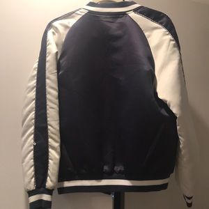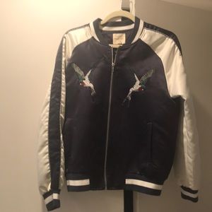 Navy blue bomber jacket with detailed hummingbird stitching on front. Only worn twice- no marks/stains. Purchased through urban outfitters. Fits true to size: medium.