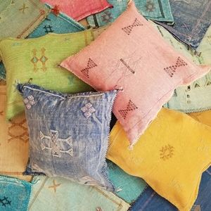 This beautiful Moroccan Cactus Silk pillow is 20x20. It is handmade in Morocco and is dyed with vegetable dyes. These sell at Restoration Hardware for $200+. They have beautiful braided edges with a hidden zipper. Due to the handmade nature variation in color and texture is normal.