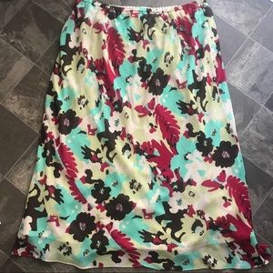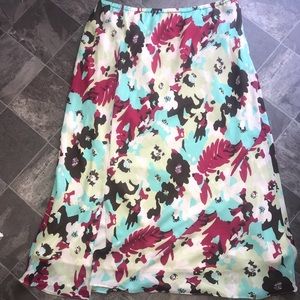 NWT- Gorgeous floral patterned skirt. Fully lined w/ small lower front slit. Flat measurements: waist 18”, length 36”, width 26”. Fabric: 100% polyester.
