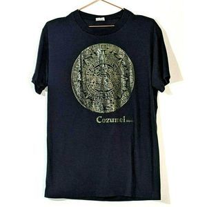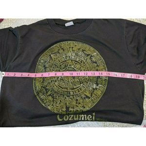 Cozumel Mexico Aztec Calendar T-shirt Single Stitch Super Thin. 20" Pit to pit, puts this shirt at a medium. Maybe a small. Material is super thin. Last picture is me holding the shirt up to the light, although it doesn't translate well in the photo. Please check photos for condition of item. Please ask questions before purchase. Thank you.
