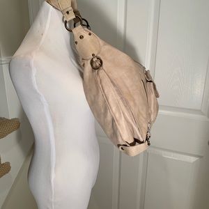 Great buckle, zip and pocket detail. Never used. A little dirt on corners of front pocket and betw two snaps (the dark part below pocket flap is a shadow in the pic)