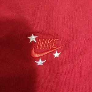 Two tone red top with white hem details. Vintage nike button up top that looks brandy melville inspired.