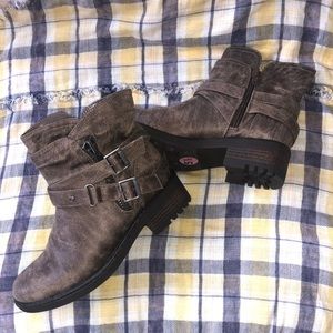 Carlos Santana “Shawn” Ankle Biker/Moto Boots with buckles, straps & zippers. Cushioned footbed for long lasting comfort and a stacked 1.5” heel. All man made materials. NWOT.