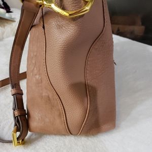 orYANY 100% Authentic made of Soft Lamb Leather. Gold tone hardware made of quality material. Adjustable shoulder strap that can be lengthened to go cross body if you prefer. Also has shoulder handles. Magnetic main closure. Outsde zipper and three pockets in side plus two cellphone pockets.The purse is in hood condition with notes on a. Couple defects shown with the pictures above.