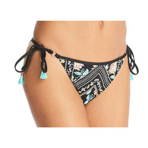 Pull-on styling; one-shoulder design; Asymmetrical neckline; asymmetrical cutout at front waist with tie at side; Reversible design: floral-print at one side, striped at the other