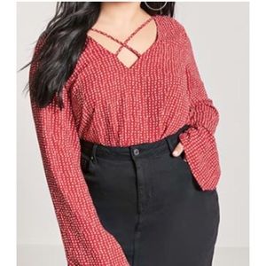 Forever 21 Plus Top Red Geo Print Caged V Neck