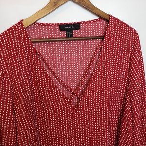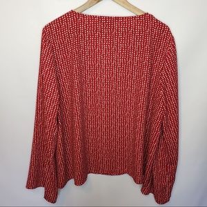 Forever 21 Plus Size Top Red Geo Print Caged V Neck Long Sleeve Blouse 3X Career