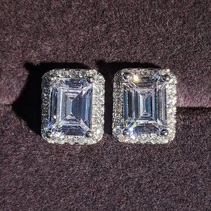 NEW 18K White Gold Diamond Halo Earrings