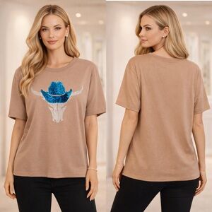 💗LAST! Jersey Knit Top with Floral Ruffle Sleeves