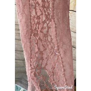This hip (happening in the present) Pink rose, lace, sheer, racerback tank top, is a MUST SEE. This women's size Medium top comes from a smoke-free home and does have some light pilling and signs of gentle use. I respond to offers quickly, so don't hesitate to reach out or make a bundle! I ship within 24 hours of your order! Boho and festival ready, add this top to a bundle today to save on shipping!