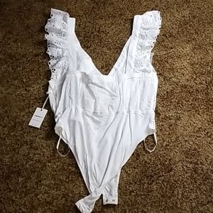 NWT. Soft Ruffled V Neck Bodysuit with 2 snaps on crotch.