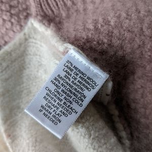 White / cream and mauve colorblock knit top from Loft. Super soft. 37% Merino wool, 33% rayon, 30% nylon. Size medium.