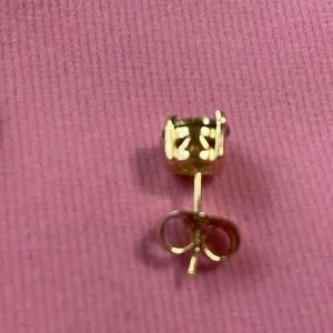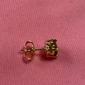 Round peridot stones, approx 1 ct each (2cttw). Gold filled four prong setting in a basket mounting. Butterfly backs.