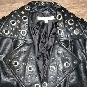 Like new. Only worn once. Tags will come with purchase. Grommet details with floral embroidery sleeves. Asymmetric Zip front. Purchased from Neiman Marcus and Sold out.