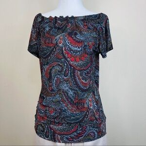 LUCKY BRAND PRINTED SHORT SLEEVE PEASANT TOP NWT