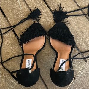 Steve Madden Sassey Black Suede Fringe Heels - Size 8
