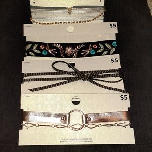 Four (4) choker-style necklaces are included in this listing, one of each style pictured. Each is brand new and perfect for your wardrobe.