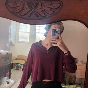 Burgundy Hollister cropped long-sleeved shirt