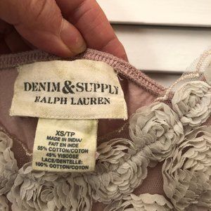 Denim & Supply Ralph Lauren cami pink with 3D flowers, adjustable shoulder straps, size XS