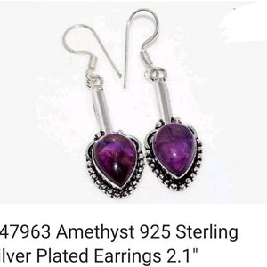 Bali boho style GENUINE Amethyst handmade silver earrings .925 sterling silver plated over copper/sterling alloy. 1.2". Matching pieces in my closet.
