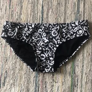 No materials tag, but the printed fabric seems to be a cotton/synthetic blend; the white lining appears to be synthetic.