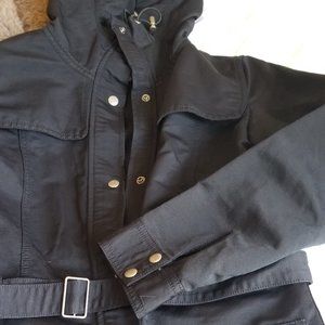 Jcrew Hooded Trench Coat. Black. Size XS. This trench coat has silver snaps and a belt for beautiful form fitting wear. $45 Bundle Sale 2/$68๐3/$81