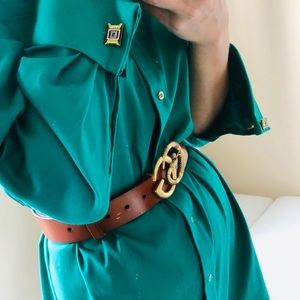 European designer long sleeve cuffed shirt dress