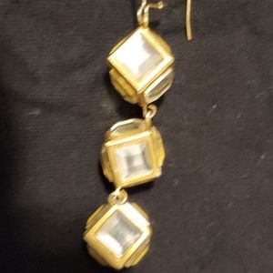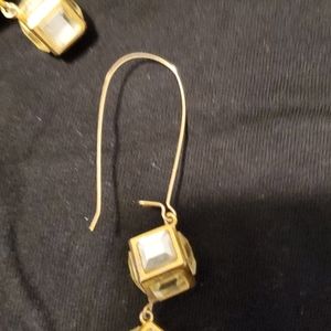 Gold tone and rhinestone hanging earrings with easy clasp for closure