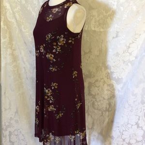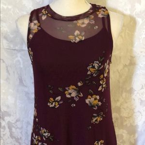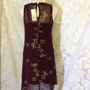 Plum color sleeveless mesh over tank top slip with adjustable straps button keyhole neck 100% polyester machine wash NWT 35” length 17” armpit to armpit