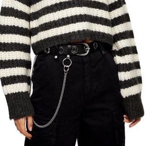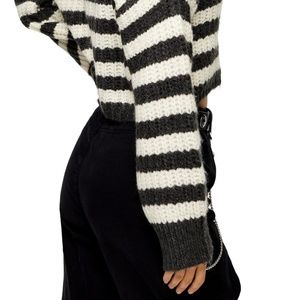 Women's new Topshop gray & ivory white stripe oversized cropped chunky sweater plus size 14. Long sleeve crew neck boxy cut. Basic staple everyday essential versatile neutrals. Comfortable comfy cozy casual street style streetwear. Spring fall winter fashion. Approx.: 51" bust; 20.25" long. Perfect condition. Brand new w/o tags! 10% off bundles! Even though pics show tags, they are no longer there.
